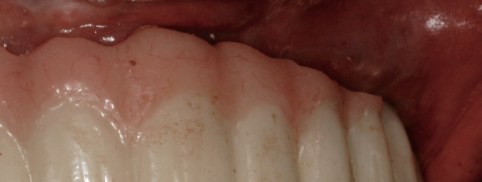 The contours of the prosthesis can have a significant impact on the patient’s ability to maintain good oral hygiene at home and keeping healthy peri-implant tissues. The practitioner should be aware of this issue and make sure restorations are as cleansable as possible. For example, a concave surface from the abutment to the buccal surface is a plaque trap and should be immediately corrected (Figure 5 and Figure 6).