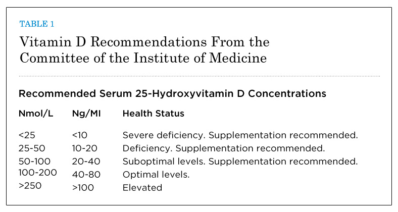 Therefore, the author suggests gathering information about the patient’s vitamin D level or asking them to be tested. Optimal vitamin D recommendations (Table 1) are now rising in keeping with research that supports it.14