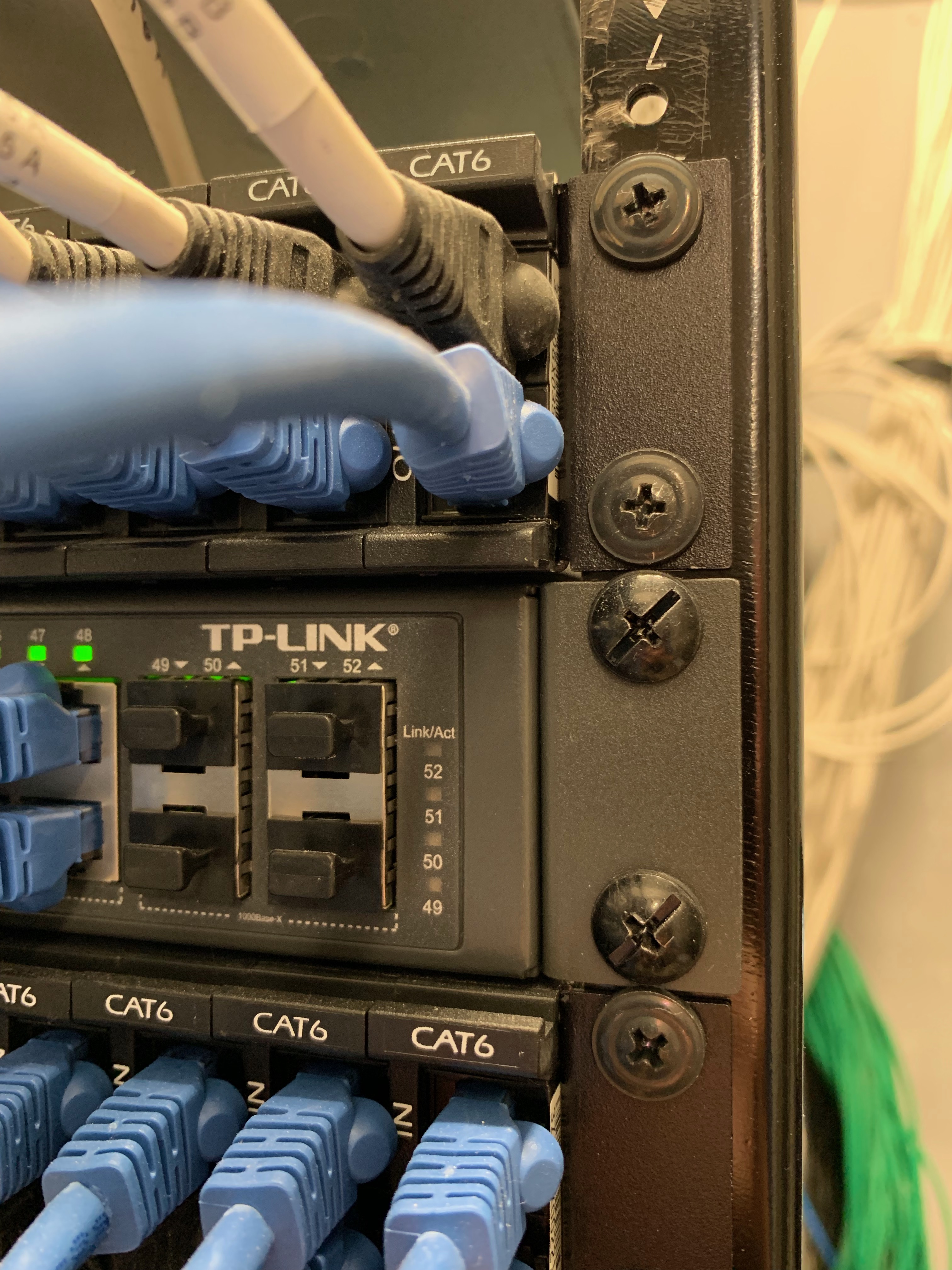 • Each device has a dedicated Cat 6 cable from the device to main switch (except milling units, which connect through a gigabit switch)