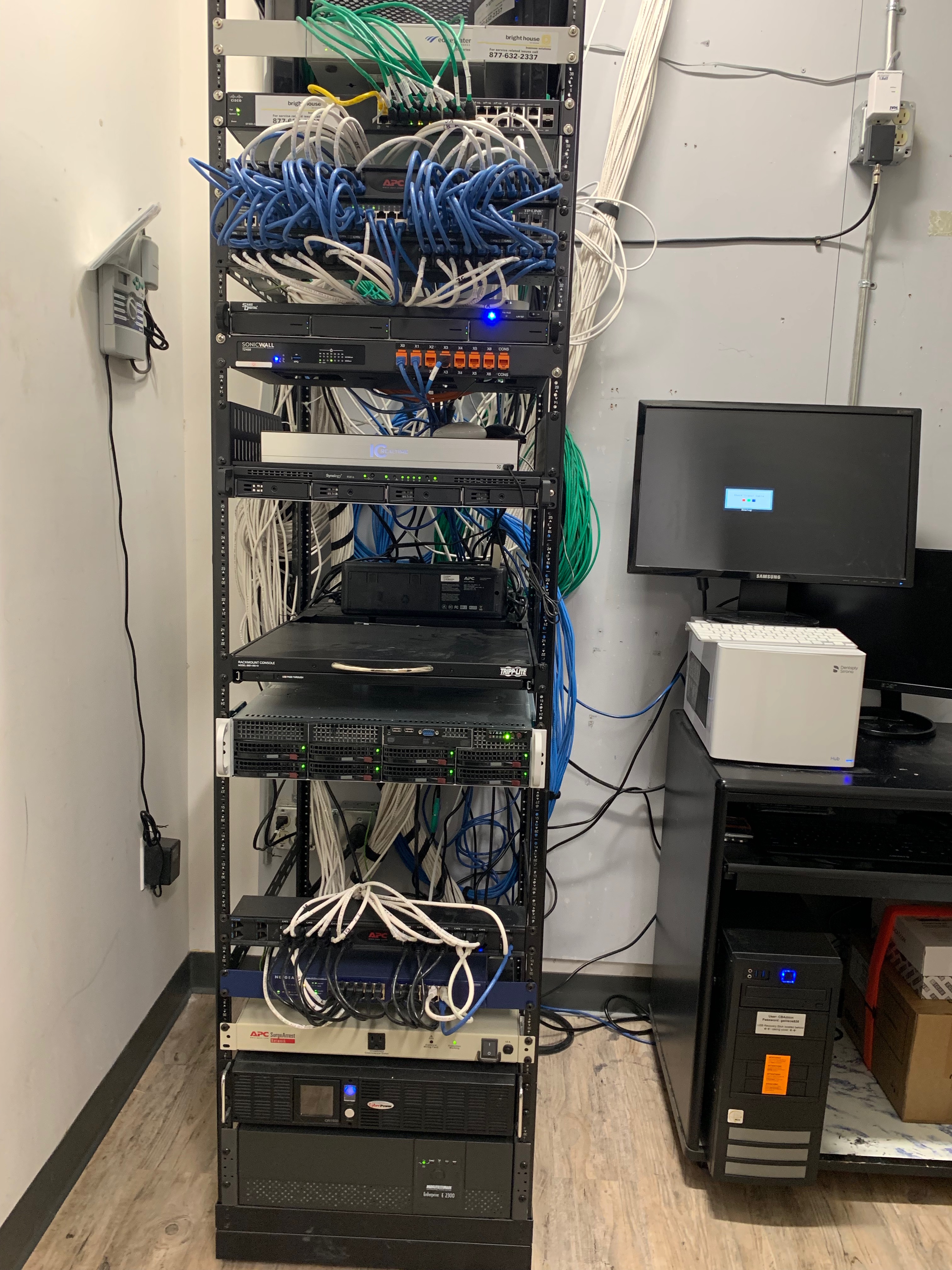 A rack and rack-mount components provide a cleaner, more organized installation and help cut down on space. A rack should not be skimped on; the more elements added, the more durable and sturdy the rack must be. As time goes on, more components are likely to be added, such as a surveillance system or second backup server.